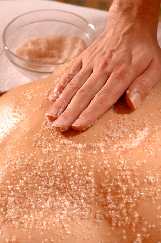 Massierend verwöhnendes Körperpeeling- Ritual mit abschließender Dusche.